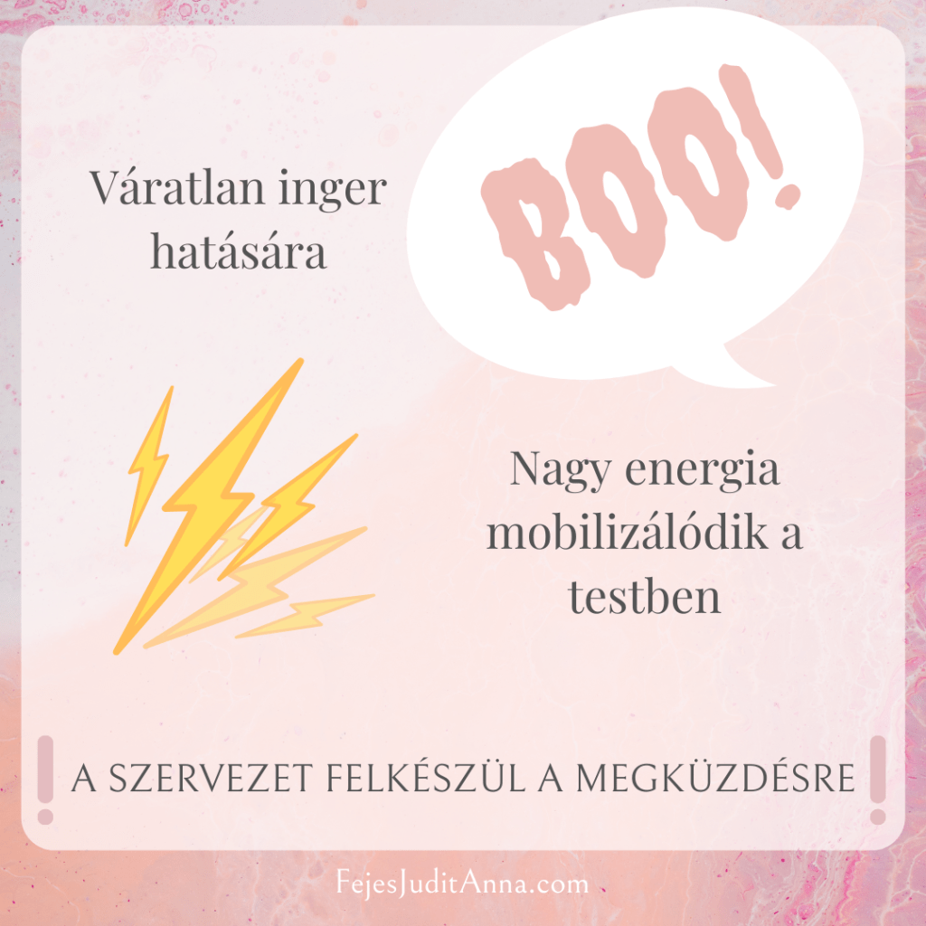 Váratlan inger hatására szervezetünk nagy energiát mozgósít, felkészülünk a védekezésre vagy menekülésre. Ha van lehetőségünk aktív cselekvésre, ez a többletenergia elvezetődik. Megvédjük magunkat, elszaladunk, félreugrunk, vagy nevetünk egy nagyot, mert feleslegesen ijedtünk meg.